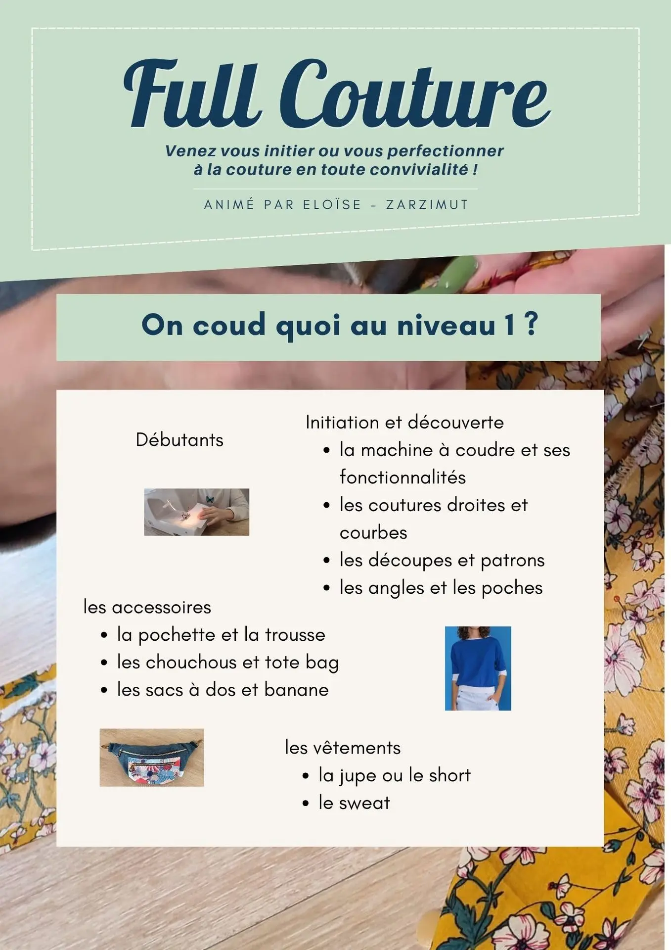 Des ateliers couture évolutifs pour démarrer à la base :