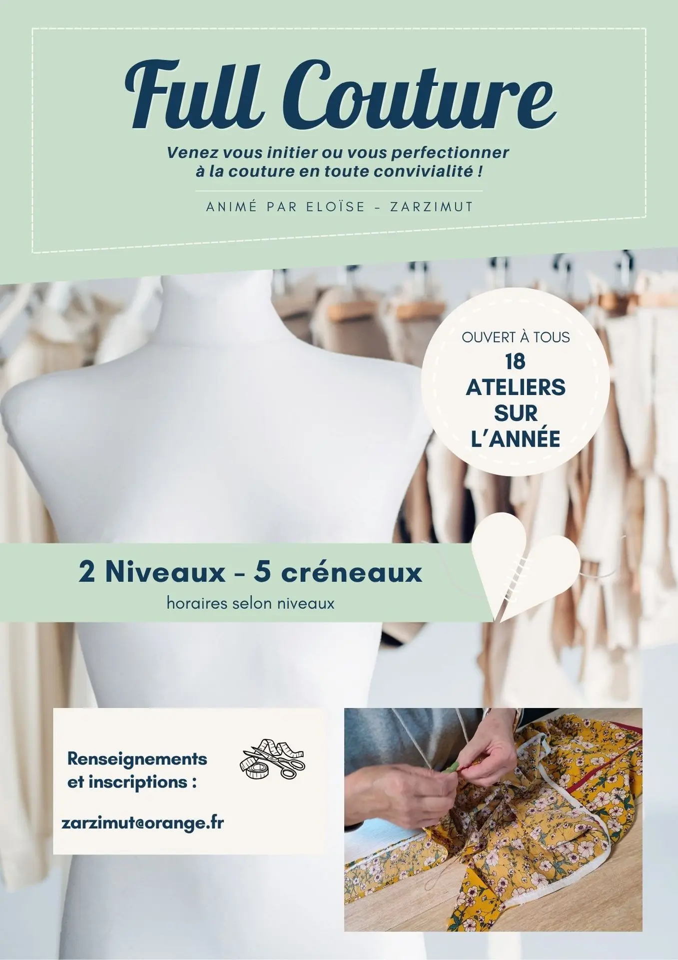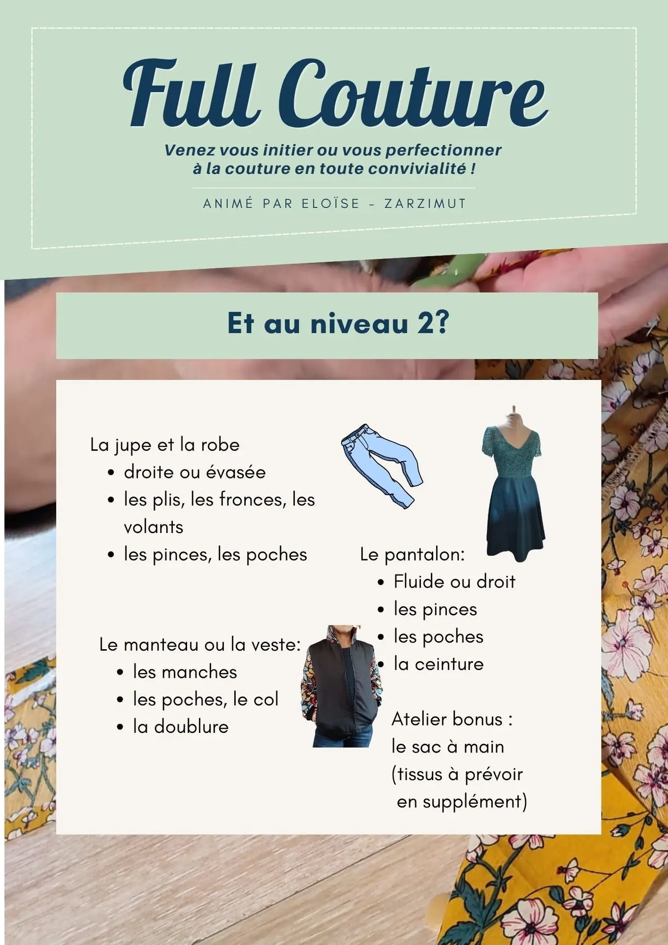 Et si tu as manqué le(s) premier(s) atelier(s) FULL COUTURE, pas d’inquiétude : on se rencontre et on évalue ensemble où tu te situes pour pouvoir intégrer les programme en cours de route.
